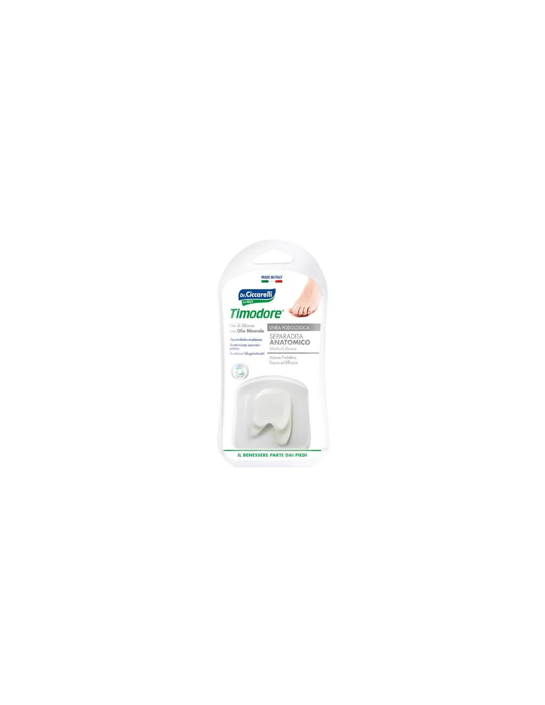 Prodotto podologico indicato per proteggere e aiutare ad evitare l'accavallamento delle dita del piede, ridurre i disagi provocati dalle callosità interdigitali e ammortizzare la pressione e lo sfregamento della calzatura.