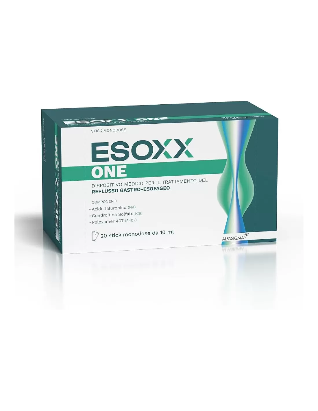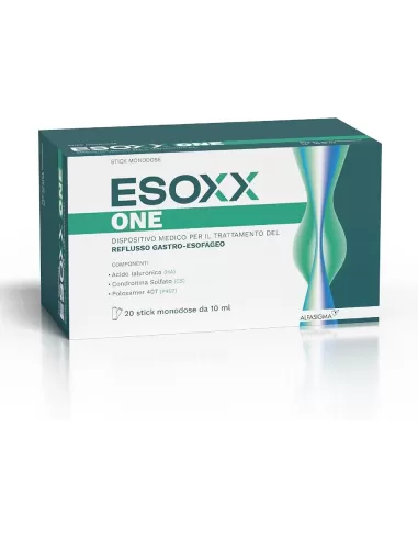 ESOXX è una associazione di acido ialuronico e condroitin-solfato, in grado di esercitare un meccanismo di difesa della mucosa gastro-esofagea originale ed innovativo. La presenza nella formulazione di un componente ad alta capacità bioadesiva (poloxamer 407), favorendo la permanenza del contatto con la superficie della parete esofagea dell’acido ialuronico e del condroitin-solfato, contribuisce all’effetto protettivo nei confronti dell’azione dell’acido cloridrico prodotto dallo stomaco. Il condroitin-solfato possiede inoltre un’azione favorente i processi riparativi della mucosa gastro-esofagea.