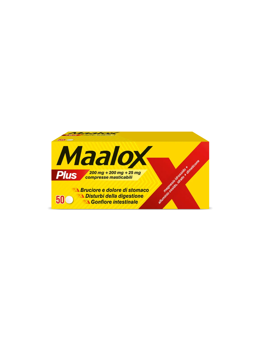 Maalox Plus viene venduto in confezione da 50 compresse masticabili.