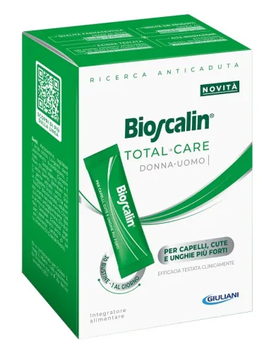 Bioscalin Total Care è un integratore alimentare specificamente formulato per fornire un supporto completo alla salute di capelli, cute e unghie. Grazie alla sua composizione ricca di nutrienti essenziali, questo prodotto aiuta a mantenere il benessere degli annessi cutanei, contribuendo a rinforzare i capelli, a migliorare l'aspetto della pelle e a fortificare le unghie. La sua formula è pensata per agire dall'interno, fornendo i mattoni necessari per la costruzione e il mantenimento di tessuti sani e resistenti. Se sei alla ricerca di un prodotto che ti aiuti a prenderti cura della tua bellezza naturale, Bioscalin Total Care potrebbe essere la soluzione ideale.