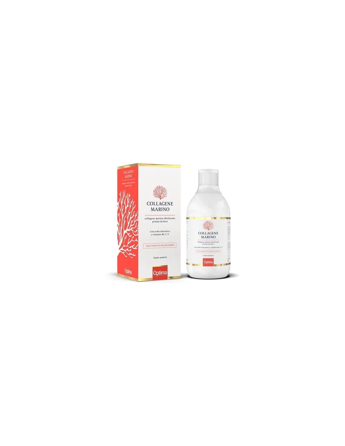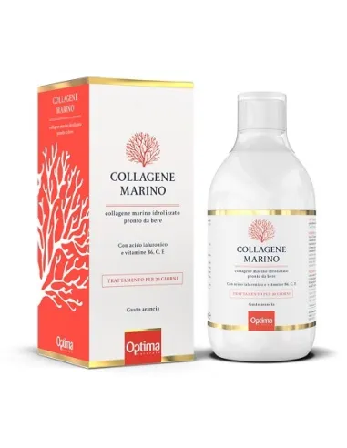 OPTIMA NATURALS SrlIntegratore alimentare liquido a base di collagene marino idrolizzato, acido ialuronico,vitamina C, vitamina E, vitamina B6. Con edulcorante. Gusto arancia.