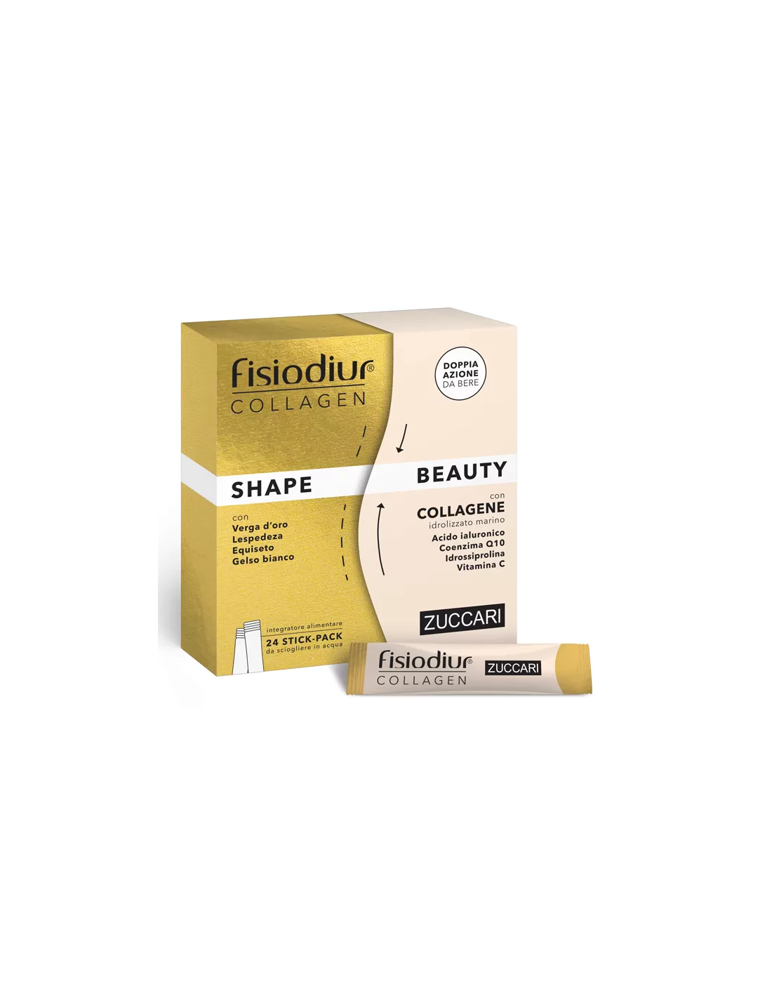 pesce), equiseto (Equisetum arvense L.) parti aeree e.s.; agente di carica: polidestrosio; aroma, vitamina C (acido L-ascorbico); acidificante: acido citrico; verga d'oro (Solidago virgurea L.) parti aeree e.s., lespedeza (Lespedeza capitata Michx.) parti aeree e.s., gelso bianco (Morus alba L.) foglie e.s.; agente antiagglomerante: biossido di silicio; L-idrossiprolina, ialuronato di sodio, coenzima Q10 (ubiquinone).
