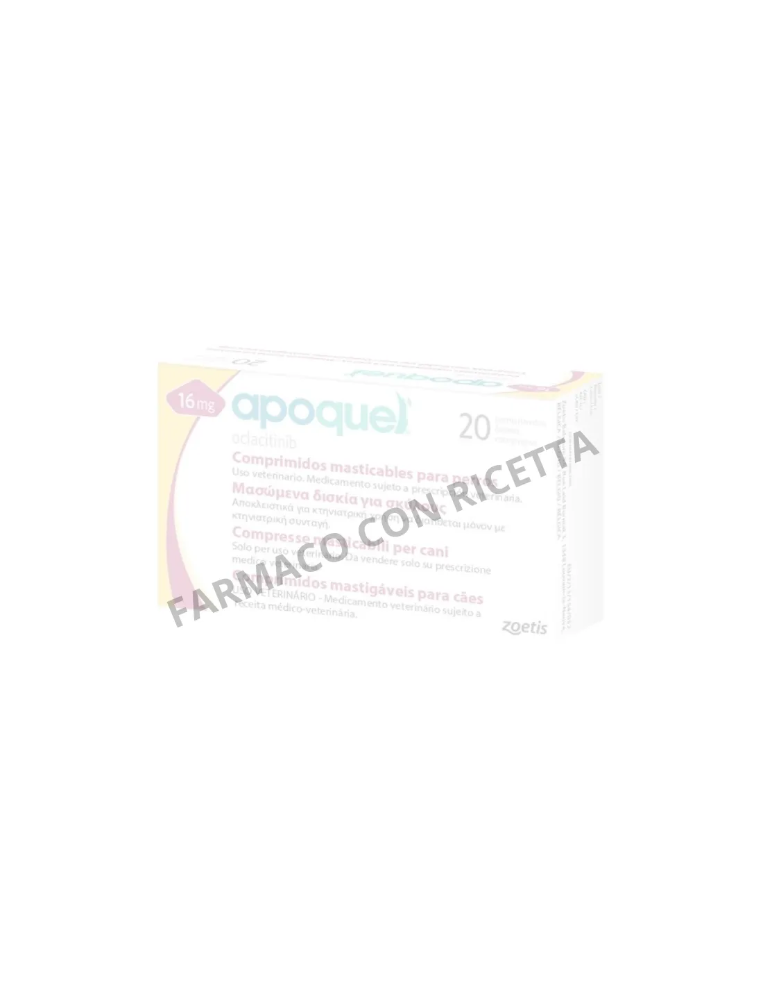 Apoquel 16 mg 20 compresse è indicato per il trattamento del prurito associato alla dermatite allergica nei cani e delle manifestazioni cliniche della dermatite atopica nei cani.