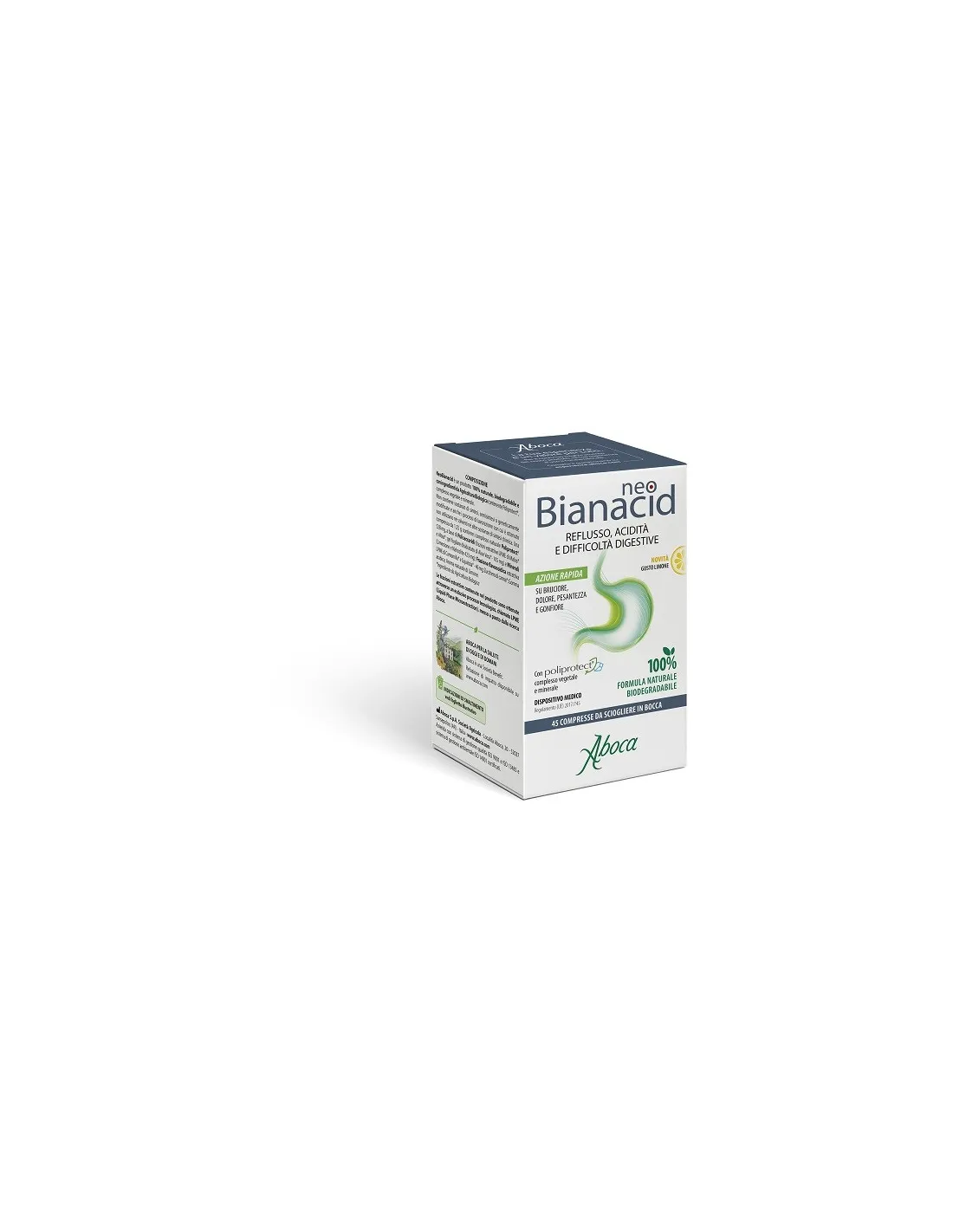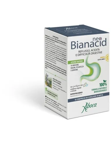 ABOCA SpA SOCIETA' AGRICOLANeoBianacid è indicato per il trattamento delle problematiche connesse all’ acidità, quali bruciore, dolore, reflusso gastroesofageo e gastrite (infiammazione della parete dello stomaco). È indicato anche nel trattamento dei sintomi associati alla difficoltà di digestione quali bruciore, pesantezza e meteorismo.