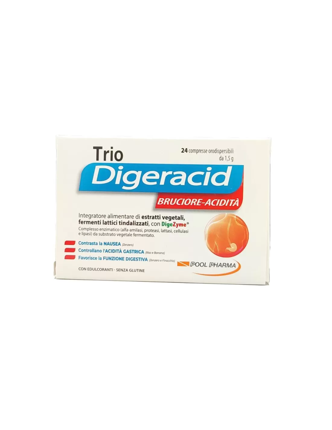 POOL PHARMA TRIO DIGERACID INTEGRATORE ALIMENTARE SENZA GLUTINE 24 COMPRESSE