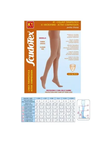Collant terapeutico K1 microfibre a compressione graduata punta chiusa (mm Hg 18-21).