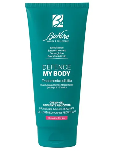 Dispositivo medico in crema gel drenante riducente per il trattamento topico ad azione freddo/caldo che stimola la microcircolazione capillare favorendo il drenaggio dei liquidi e delle scorie nel tessuto sottocutaneo. Grazie alla specifica composizione, il prodotto è in grado di protrarre la stimolazione del microcircolo per alcune ore. Per questo motivo può essere impiegato nel trattamento della cellulite (panniculopatia edemato-fibrosclerotica) che rappresenta uno stato di asfissia dei tessuti.