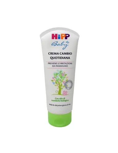 HiPP Baby Crema Cambio quotidiana, con prezioso olio di mandorle biologico, lenisce e si prende cura della pelle prevenendo le irritazioni da pannolino.