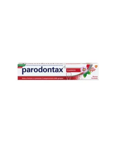 GLAXOSMITHKLINE C.HEALTH.SrlParodontax Herbal Classico DentifricioIl dentifricio Parodontax Herbal Classic è un'efficace prevenzione contro il sanguinamento e il danneggiamento delle gengive.Nuova formula.Caratteristiche:- previene la formazione della carie dentale- rafforza lo smalto- dona sollievo in caso di paradontosi- rid...