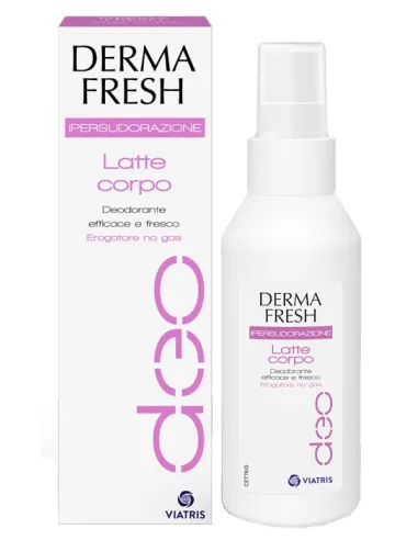 ROTTAPHARM SpAPrevieni i cattivi odori nelle zone più delicate del tuo corpo Dermafresh Ipersudorazione, latte corpo sviluppato per risolvere i fastidi legati alla traspirazione eccessiva soprattutto a livello delle ascelle e dell’inguine. Realizzato con componenti selezionati e testati, il deodorante Dermafresh Ipersudorazione, ti garantisce una regolazione della sudorazione molto efficace restituendoti una sensazione di freschezza e pulizia che dura tutto il giorno.