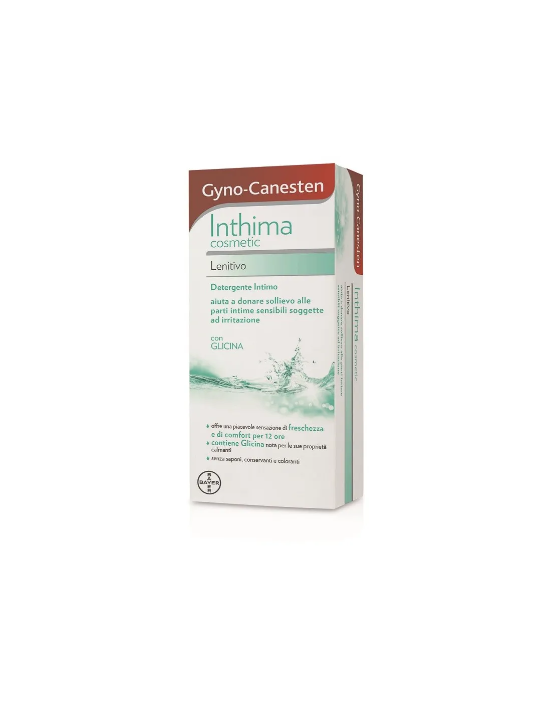 BAYER SpAGyno-Canesten Inthima detergente per l'igiene intima, ad azione lenitiva. Dona sollievo alle zone intime sensibili. Protezione e detersione dell'igiene intima. Offre una piacevole sensazione di freschezza per 12 ore. A base di Glicina (1,44%), dalle proprietà calmanti. Dermatologicamente testato, pH 8,5. Senza saponi, senza conservanti.