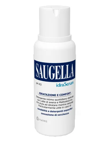È un detergente intimo quotidiano con Latte di avena, Maltodestrine, estratti di Salvia officinalis (salvia) e Calendula officinalis (calendula), che associa un’attività idratante ad una delicata azione detergente. Rispetta il film idrolipidico della pelle. Saugella IdraSerum rispetta e mantiene l’equilibrio dell’area vulvare in età fertile e in menopausa. La sua speciale formula è adatta anche al lavaggio quotidiano del corpo, anche in caso di pelli sensibili.