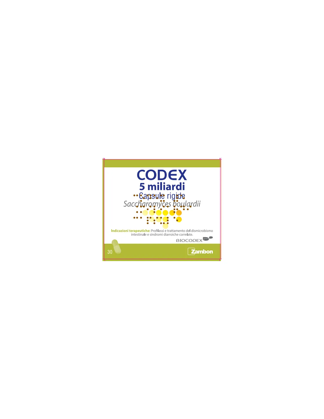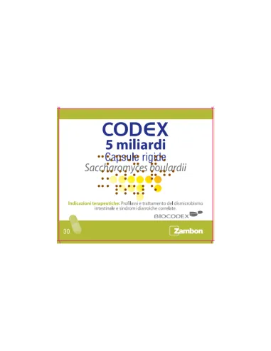 Ogni capsula di CODEX contiene 5 miliardi di Saccharomyces boulardii: per ripristinare l’equilibrio intestinale, regolarizzandone l’attività, ripristinare il normale equilibrio della flora batterica, e prevenire o trattare le diarree correlate al dismicrobismo intestinale.