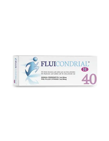 Gel sterile iniettabile, biodegradabile, per uso intra-articolare; consiste di un acido ialuronico a medio peso molecolare, prodotto da batteri Streptococcus Equi, formulato ad una concentrazione di 20mg/ml e un volume di 2ml. Fluicondrial è caratterizzato da proprietà viscoelastiche, pertanto consente di favorire la normalizzazione della viscosità del liquido sinoviale presente nella cavità articolare.
