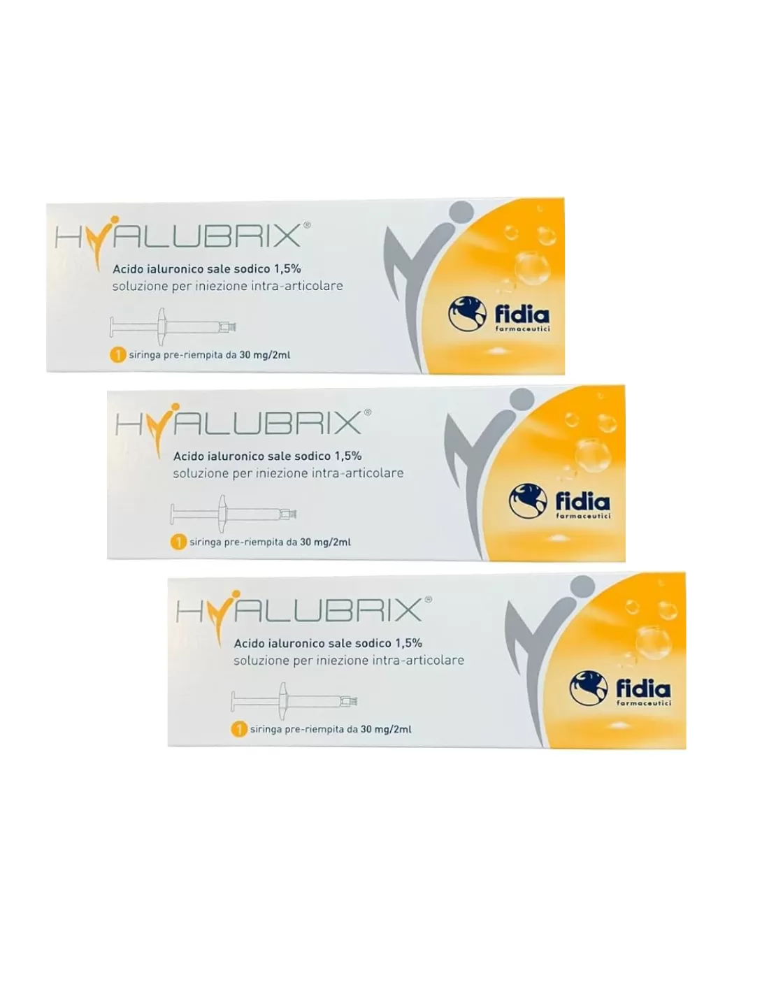 Astuccio contenente 3 siringhe pre-riempite.