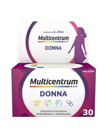 GLAXOSMITHKLINE C.HEALTH.SrlMulticentrum Donna è un integratore alimentare multivitaminico – multiminerale, appositamente formulato per supportare le esigenze delle donne. È importante soddisfare le specifiche necessità nutrizionali della donna, differenti da quelle dell’uomo, per sostenere al meglio il suo benessere generale. I nutrienti fondamentali per supportare le specifiche necessità della donna.