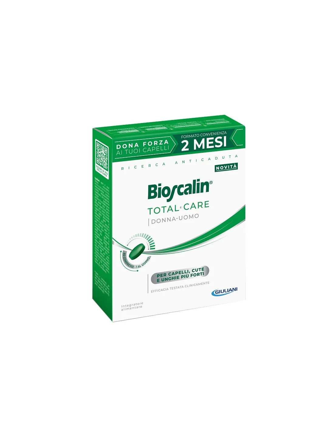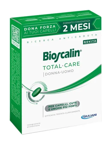 La formula di Bioscalin Total Care include ingredienti chiave come lo zinco, che contribuisce al mantenimento di unghie, pelle e capelli sani, la niacina e la vitamina D3, importanti per diverse funzioni metaboliche. Contiene anche L-arginina, metilsulfonilmetano (MSM) e N-acetilcisteina, composti che supportano la produzione di cheratina, la proteina fondamentale che costituisce capelli e unghie. Gli estratti di jiaogulan, bambù e scotano apportano ulteriori benefici, contribuendo a preservare la struttura dei capelli e migliorandone la vitalità.