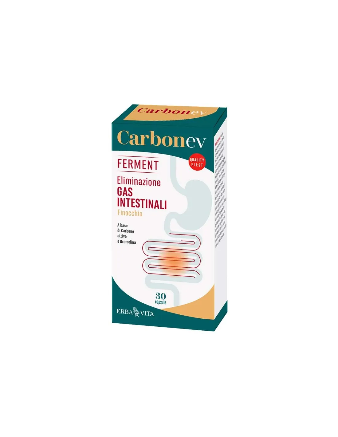 Integratore alimentare a base di carbone attivo e bromelina utile in caso di formazione di gas e gonfiore addominale, difficoltà digestive, squilibri alimentari e pesantezza post-prandiale.