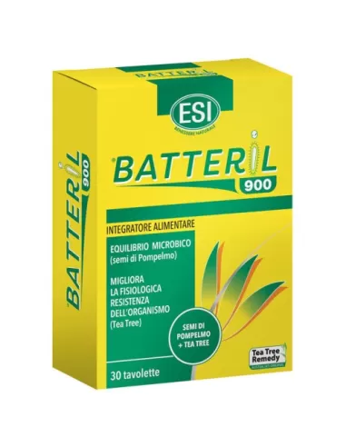 Batteril 900 è un integratore alimentare a base di estratto di semi di Pompelmo e olio essenziale di Tea Tree.