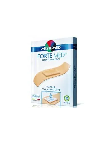 Forte Med garantisce una elevata protezione della ferita dagli agenti esterni (sporcizia, batteri) grazie ad un supporto particolarmente resistente. Forte Med grazie alla microperforazione consente la traspirazione della cute evitando processi di macerazione. Forte Med ha un tampone centrale contenente clorexidina digluconato 0,5%, sostanza battericida ad elevato spettro d'azione. Forte Med è dotato di un adesivo ipoallergenico particolarmente indicato anche per le pelli più sensibili.
