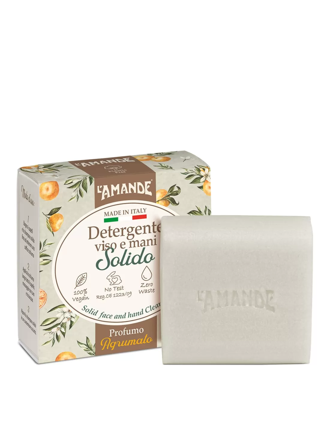 Detergente viso e mani Solido – Profumo AGRUMATO – con oli essenziali Italiani Bio di Mandarino e Arancia Amara, amido di Mais e burro di Karité