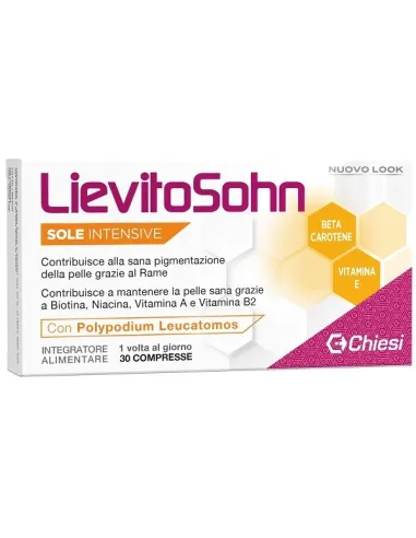 CHIESI FARMACEUTICI SpAIl nuovo LievitoSohn Sole Intensive è un integratore alimentare che grazie alla sua formulazione contribuisce alla sana pigmentazione della pelle in casi di esposizione intensa ai raggi solari