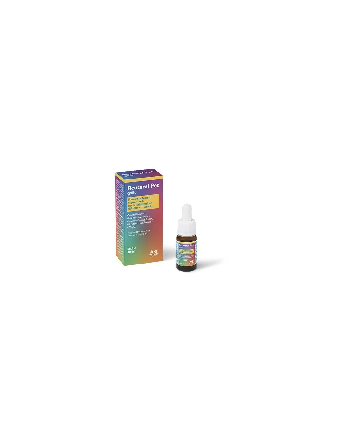 Formula multiceppo in gocce orali per la stabilizzazione della flora intestinale. Mangime complementare per gatti di tutte le età con stabilizzatori della flora intestinale – Limosilactobacillus Reuteri, ed Enterococcus faecium e vitamina D3. Mangime complementare privo di derivati animali che, grazie alla sua formulazione multiceppo, contribuisce a stabilizzare la flora intestinale. Reuteral Pet gatto contiene vitamina D3, Limosilactobacillus reuteri ed Enterococcus faecium in grado di favorire il normale equilibrio della flora intestinale.