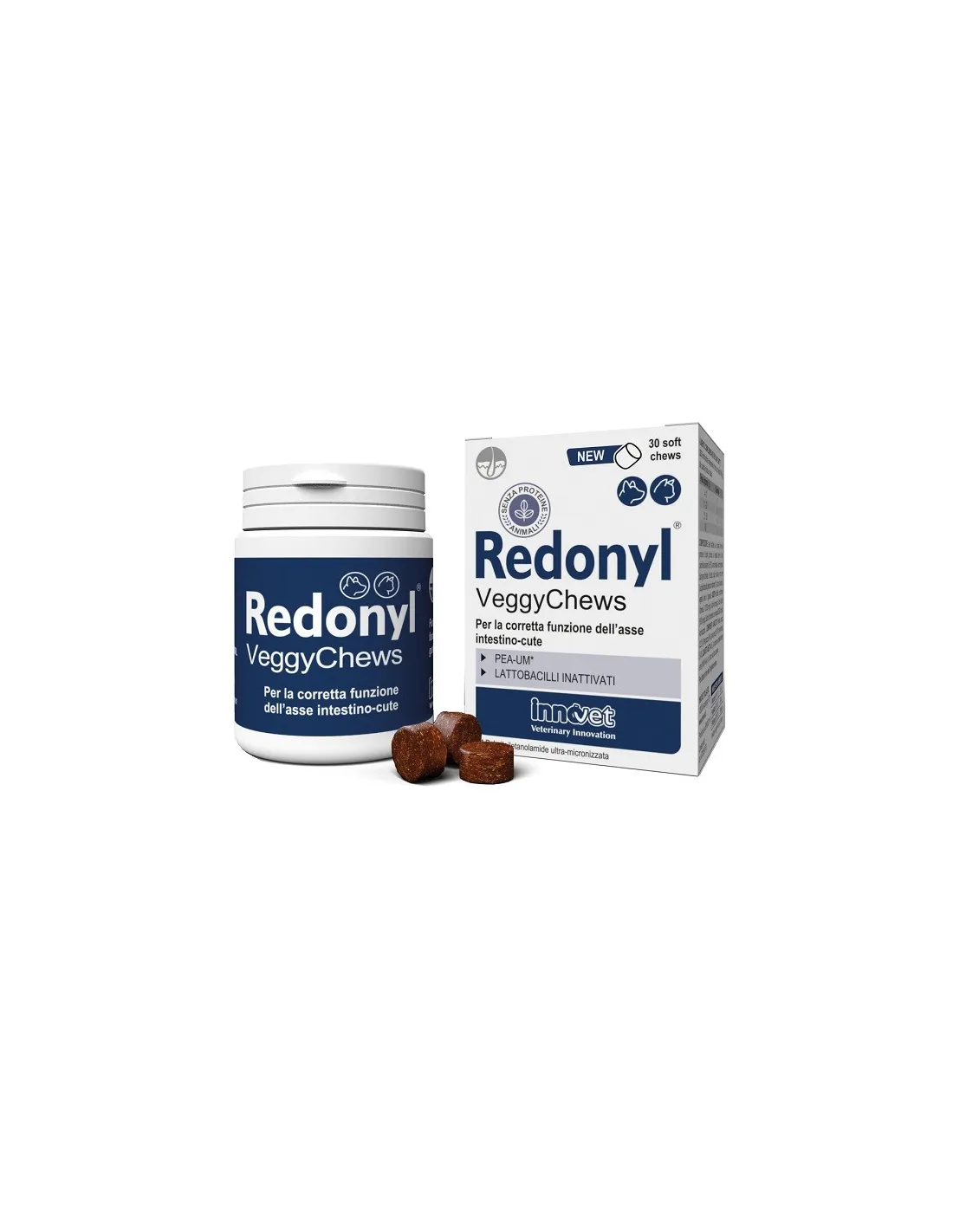 Redonyl Veggy è un prodotto innovativo per cani e gatti, progettato per supportare la corretta funzione dell'asse intestino-cute. Grazie all'associazione tra PEA-um e lattobacilli inattivati, contribuisce a mantenere la salute della pelle e del mantello dei tuoi animali domestici. Questo prodotto è ideale per chi desidera prendersi cura del benessere del proprio amico a quattro zampe.
