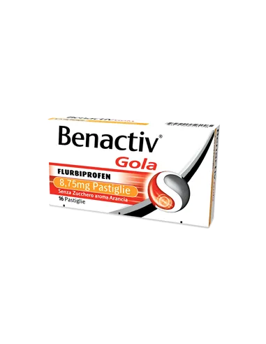 BENACTIV GOLA contiene flurbiprofene, un medicinale antinfiammatorio e analgesico (antidolorifico) non steroideo, che agisce contro l’infiammazione e il dolore della gola, della bocca e delle gengive. Con azione antinfiammatoria per chi non può o non desidera assumere zuccheri.