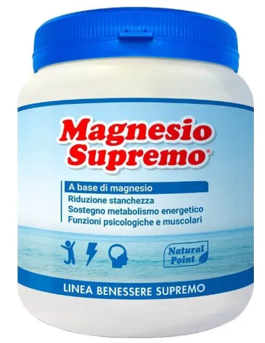 NATURAL POINT SrlMagnesio Supremo è un integratore alimentare formulato da Natural Point, ideato per apportare magnesio citrato in forma organica altamente solubile, caratterizzato da un facile e veloce assorbimento.