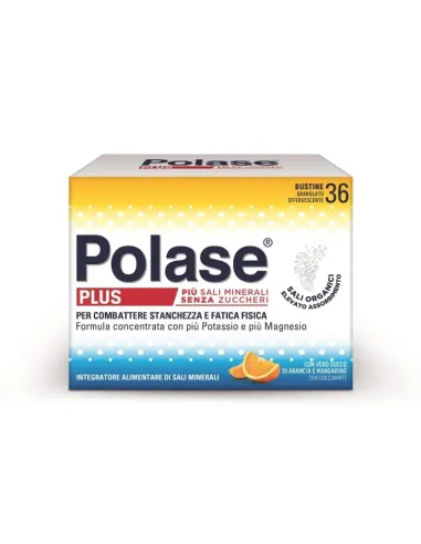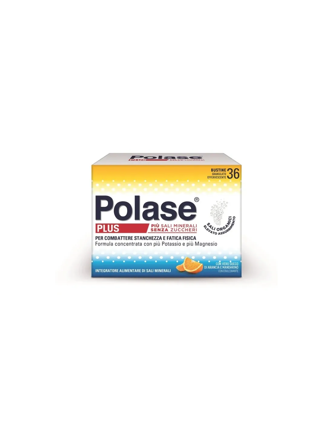 Polase Plus è disponibile in confezioni da 20/24 e 36 bustine di granulato effervescente con vero succo di arancia e mandarino e senza zuccheri.