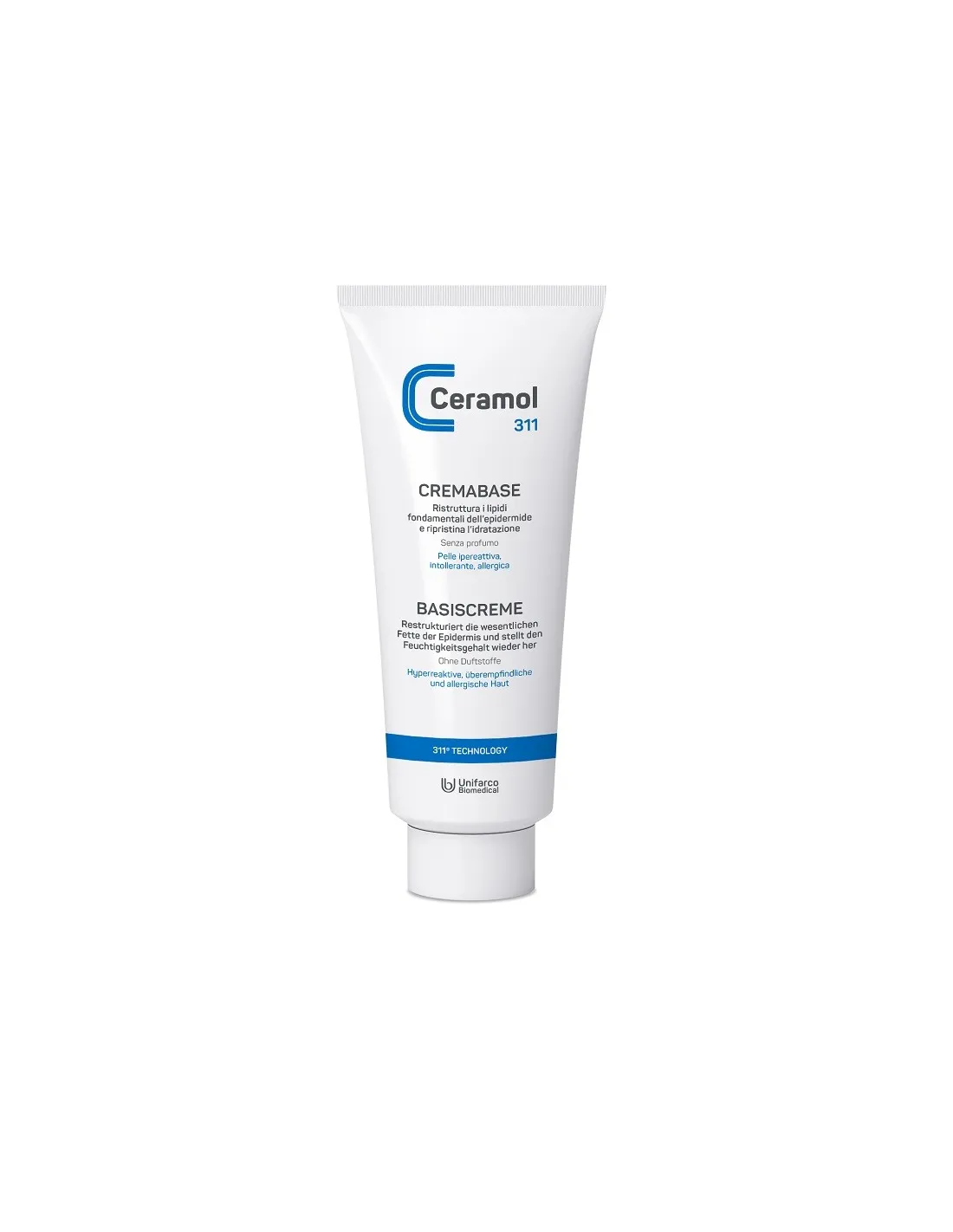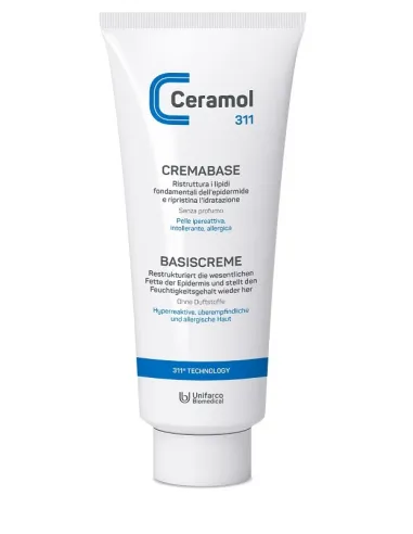Ceramol 311 Crema Base corpo ad alta scorrevolezza e di facile assorbimento. I principi attivi in essa contenuti oltre a ricostruire la barriera cutanea, hanno effetto lenitivo ed emolliente.