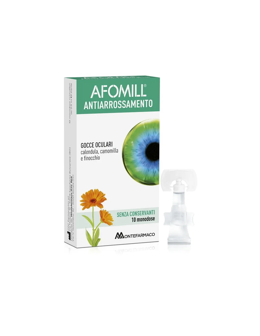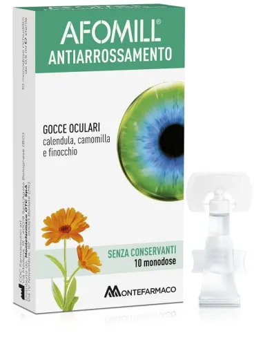 MONTEFARMACO OTC SpAAfomill Antiarrossamento è una soluzione sterile (medical device di classe IIb) ad uso oftalmico senza conservanti, a pH fisiologico, a base di acque distillate di calendula, camomilla e finocchio, indicata per ristabilire lo stato naturale dell’occhio a seguito di irritazione o rossore causati da agenti atmosferici, da fattori ambientali e stili di vita. Le acque distillate di calendula, camomilla e finocchio risultano indicate per alleviare l’affaticamento e l’arrossamento degli occhi in virtù delle loro proprietà idratanti, lenitive e rinfrescanti.