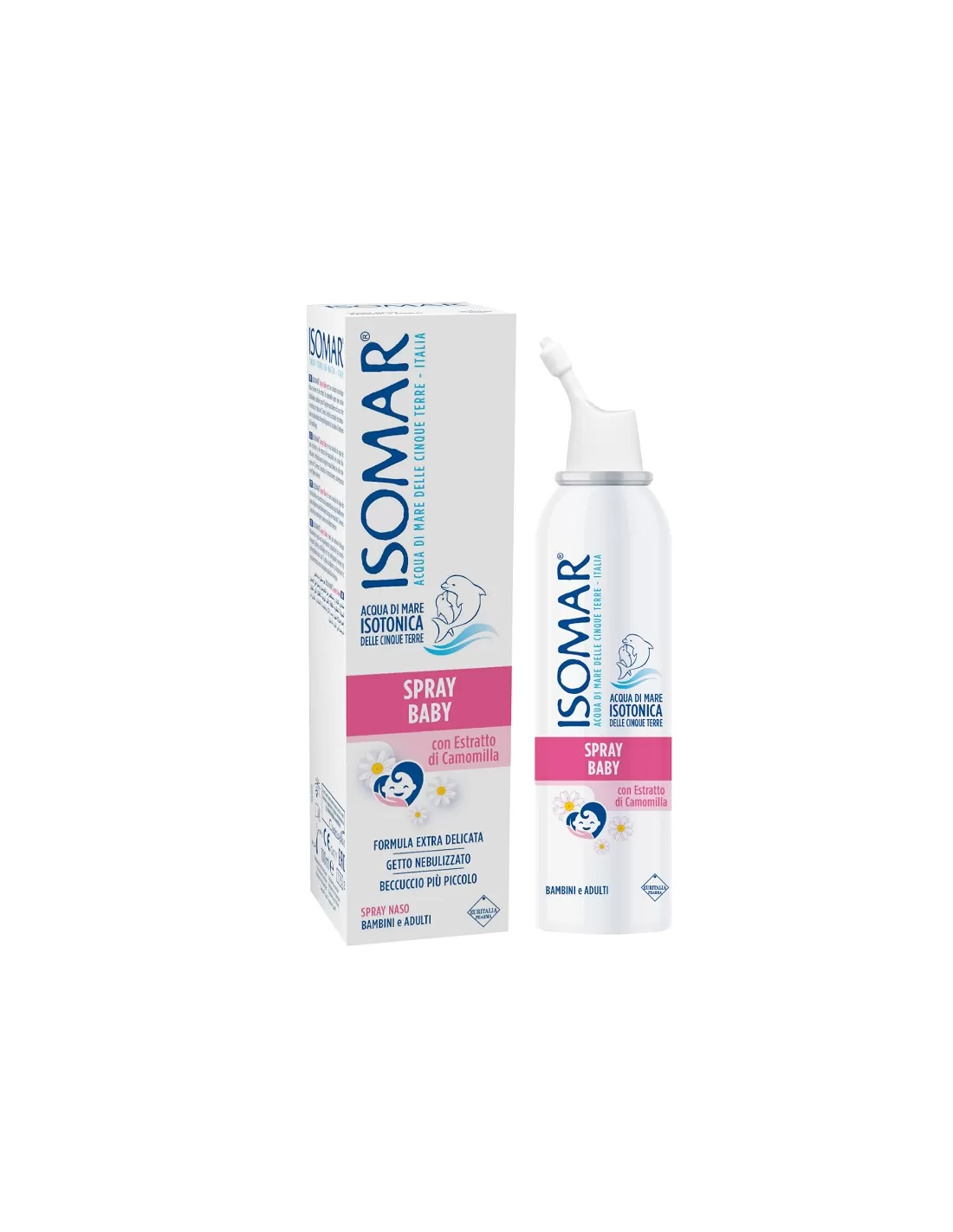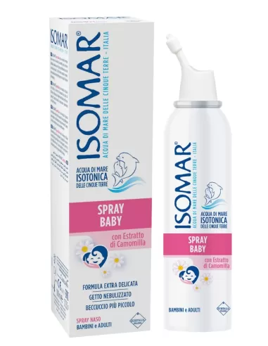 ISOMAR Spray Baby è una soluzione di acqua di mare isotonica ed estratto di camomilla ad azione fluidificante, indicata in caso di