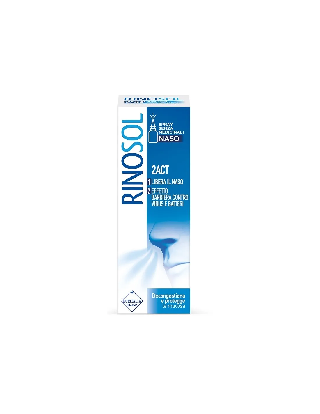 Dispositivo Medico che unisce un’efficace azione decongestionante ad un’azione protettiva della mucosa nasale. È indicato nei casi di congestione e irritazione della mucosa nasale, come nelle sindromi influenzali, raffreddore, riniti allergiche e sinusiti, sia acute che croniche. Rinosol 2ACT agisce grazie ad un complesso attivo naturale di tannini, resine, polisaccaridi e flavonoidi che interagisce con la mucosa nasale svolgendo una doppia azione: