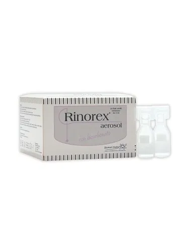 Rinorex Aerosol viene venduto in Confezione contenente 25 fiale monodose sterili da 3 ml