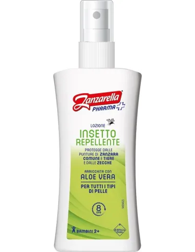 Prodotto insetto repellente pronto all'uso. Protegge dalle punture delle zanzare di varie specie, compresa la zanzara tigre, sia nelle ore diurne che nelle ore notturne, fino a otto ore. Indicato per l'uso in zone infestate dalla zanzara tropicale (Anopheles gambiae) dove splica la sua protezione per tre ore.