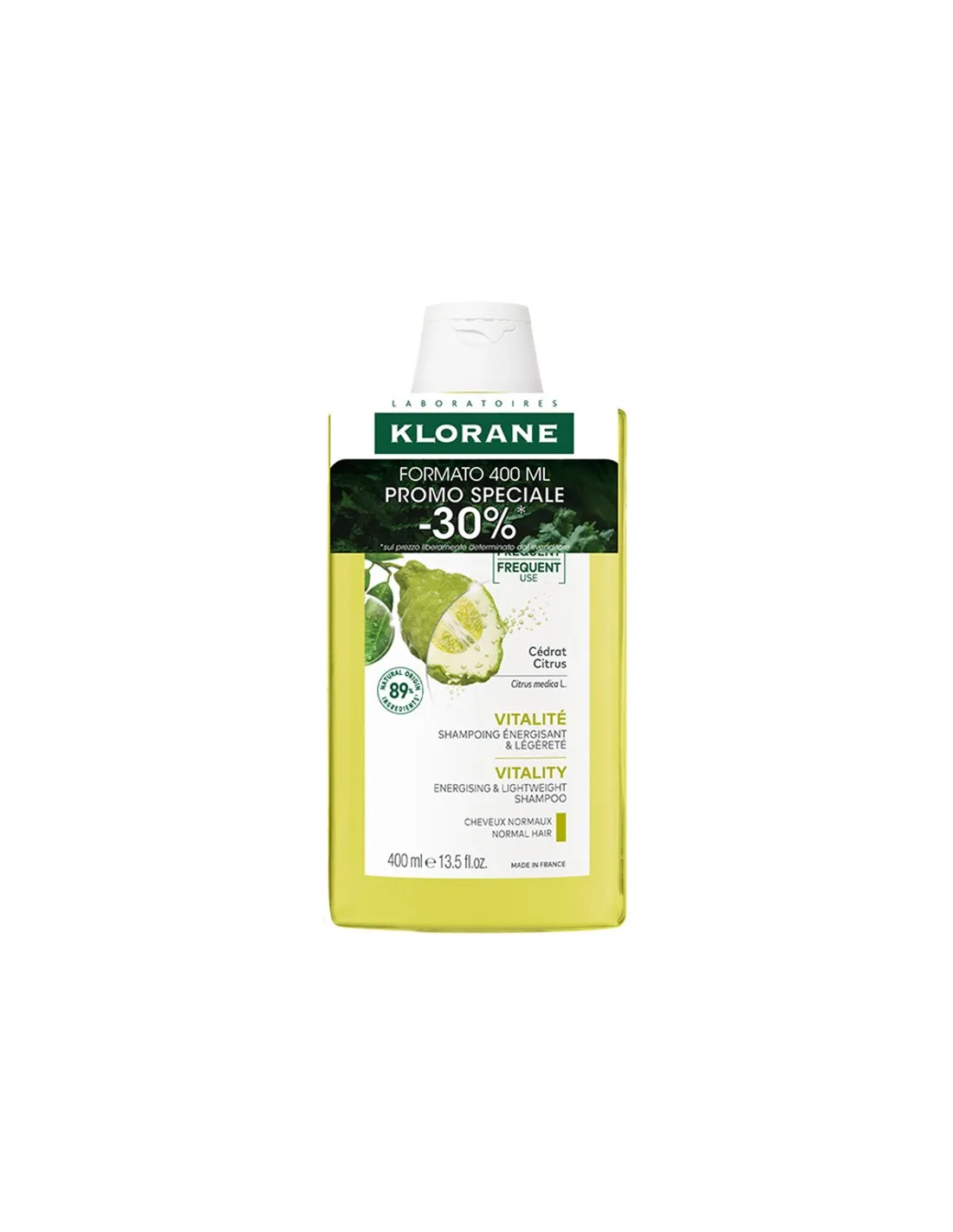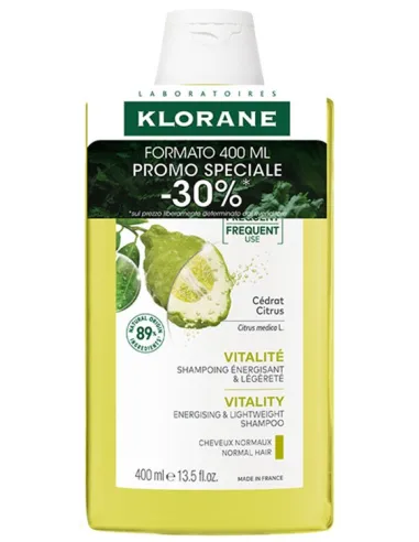 Klorane ha formulato questo shampoo purificante ed energizzante per rispondere alle esigenze dei capelli normali che tendono a diventare grassi rapidamente. Fin dalla prima applicazione, deterge e purifica il cuoio capelluto rimuovendo efficacemente il sebo e le impurità. La sua formula biodegradabile* a base di polpa di Cedro, un principio attivo seboriduttore, lascia i capelli puliti più a lungo, più sani e leggeri. Questa formula adatta all'uso quotidiano rivitalizza i capelli lasciando un leggero profumo con note di agrumi. 86% di ingredienti naturali. Purifica il cuoio capelluto ed elimina il sebo in eccesso per capelli pieni di vitalità ed energia