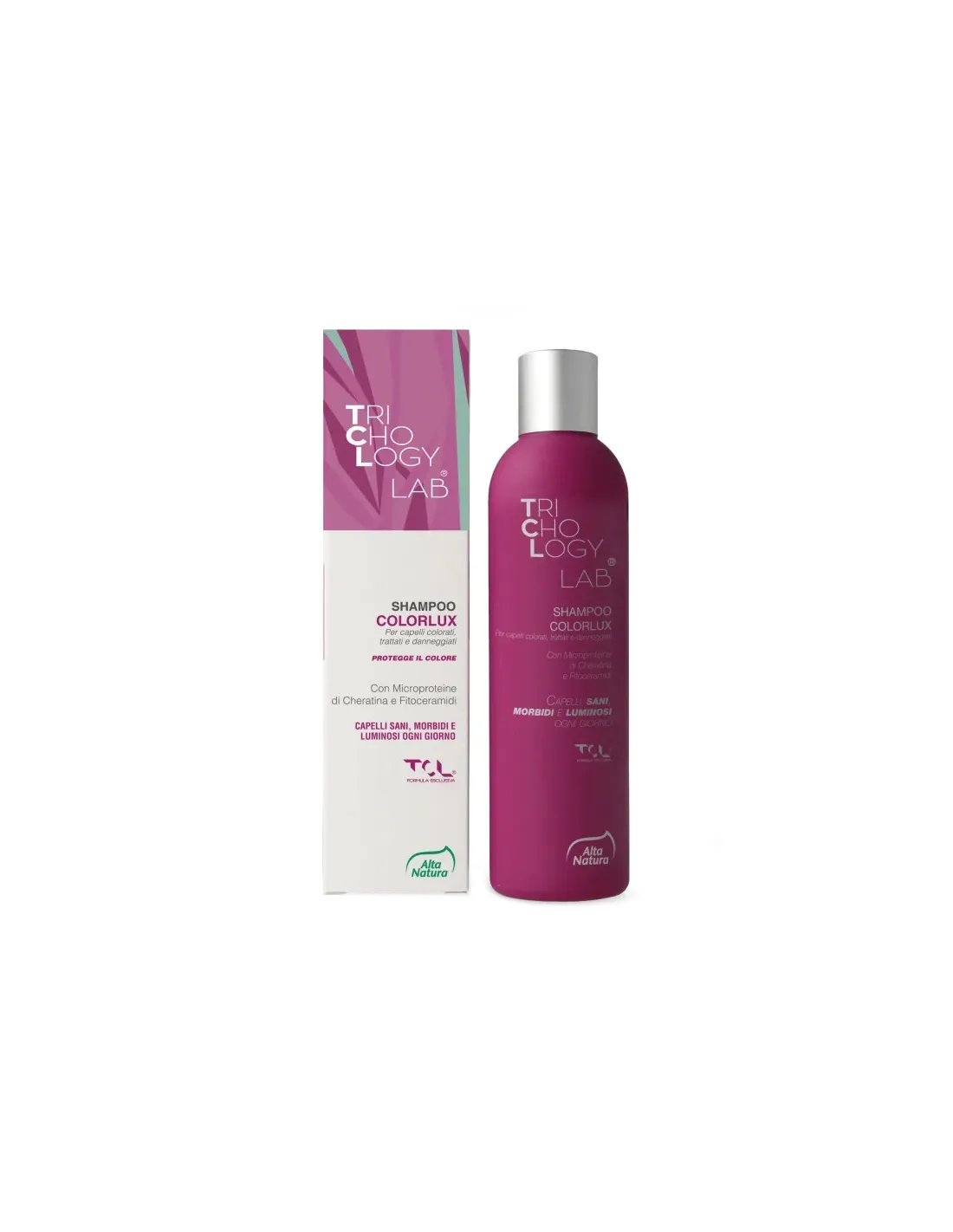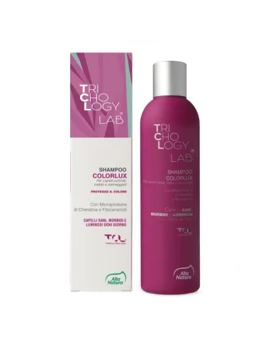 ALTA NATURA-INALME SrlShampoo Colorlux Trichology Lab grazie alla efficace combinazione del complesso esclusivo TCL di Alta Natura ed alle Microproteine Idrolisate di Cheratina, consente il quotidiano nutrimento del capello sottoposto a cicli di trattamento di