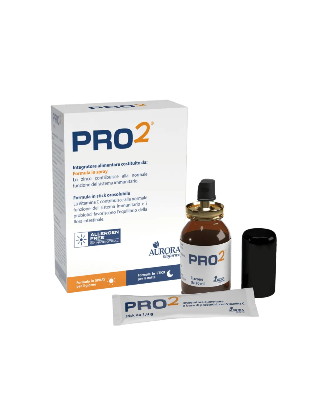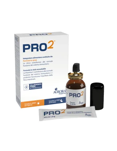 AURORA BIOFARMA Srl1. PRO2 Spray (20 ml): Per la Normale Funzione Immunitaria La formula in spray, al gusto frutti di bosco, è pensata per un'assunzione rapida ed efficace.