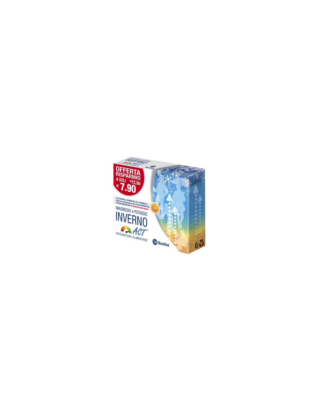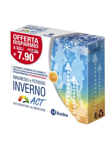 Si consiglia di assumere 1 bustina al giorno fino ad un massimo di 2. Sciogliere il contenuto di una bustina in un bicchiere d'acqua. Si consiglia di utilizzare Magnesio e Potassio Act Inverno per almeno due settimane.