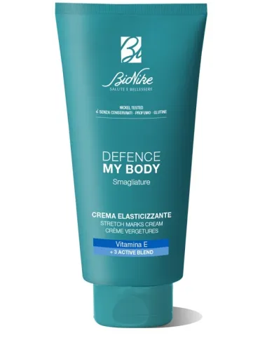 I.C.I.M. (BIONIKE) INTERNATIONDefence My Body Smagliature Crema Elasticizzante, trattamento specifico per prevenire la comparsa di smagliature e contribuire ad attenuare quelle esistenti. Formula dalla texture ricca e fondente, ideale per un massaggio prolungato per migliorare elasticità e compattezza cutanee. Consigliata durante e dopo la gravidanza, in allattamento, in caso di diete dimagranti e attività fisica costante.