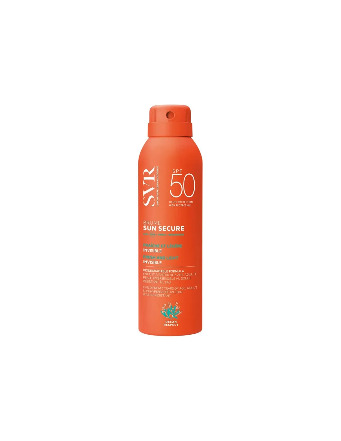 LABORATOIRES SVRSUN SECURE Brume SPF50 garantisce un'elevata protezione solare dermatologica grazie alla nuova combinazione di filtri brevettata(1) che rispetta l'ambiente marino. La combinazione con una tecnologia antiossidante, permette di schermare tutti i tipi di raggi solari.