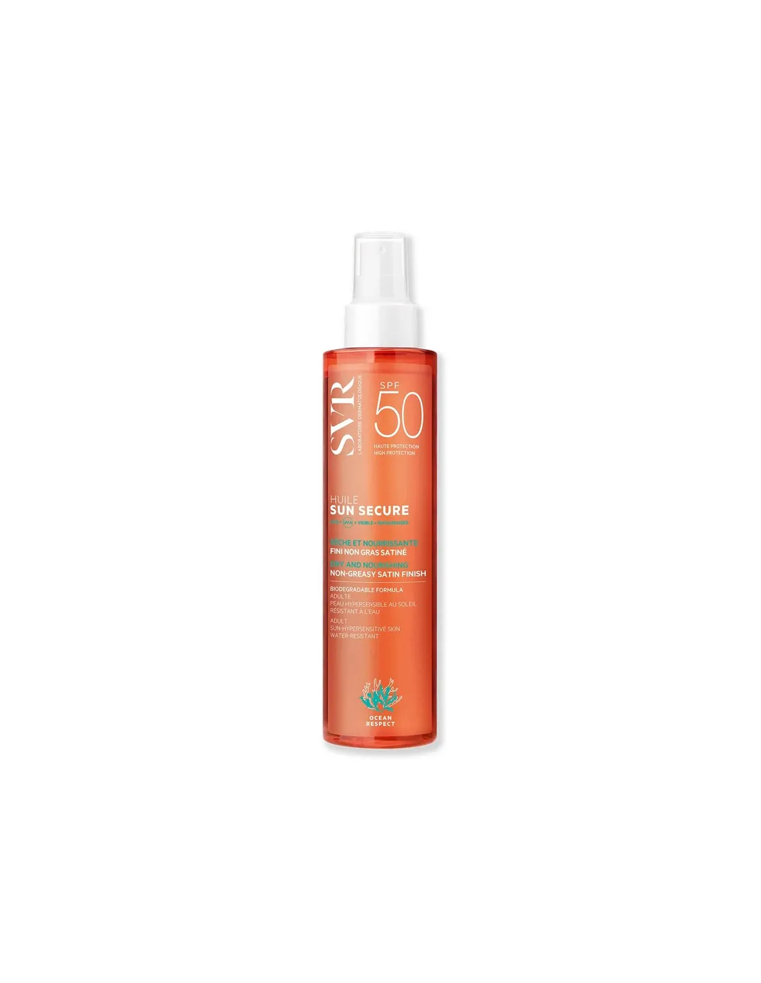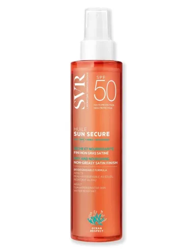 LABORATOIRES SVRSUN SECURE Huile SPF50 garantisce un'elevata protezione solare dermatologica grazie alla nuova combinazione di filtri brevettata che rispetta l'ambiente marino. La combinazione con una tecnologia antiossidante, permette di schermare tutti i tipi di raggi solari.