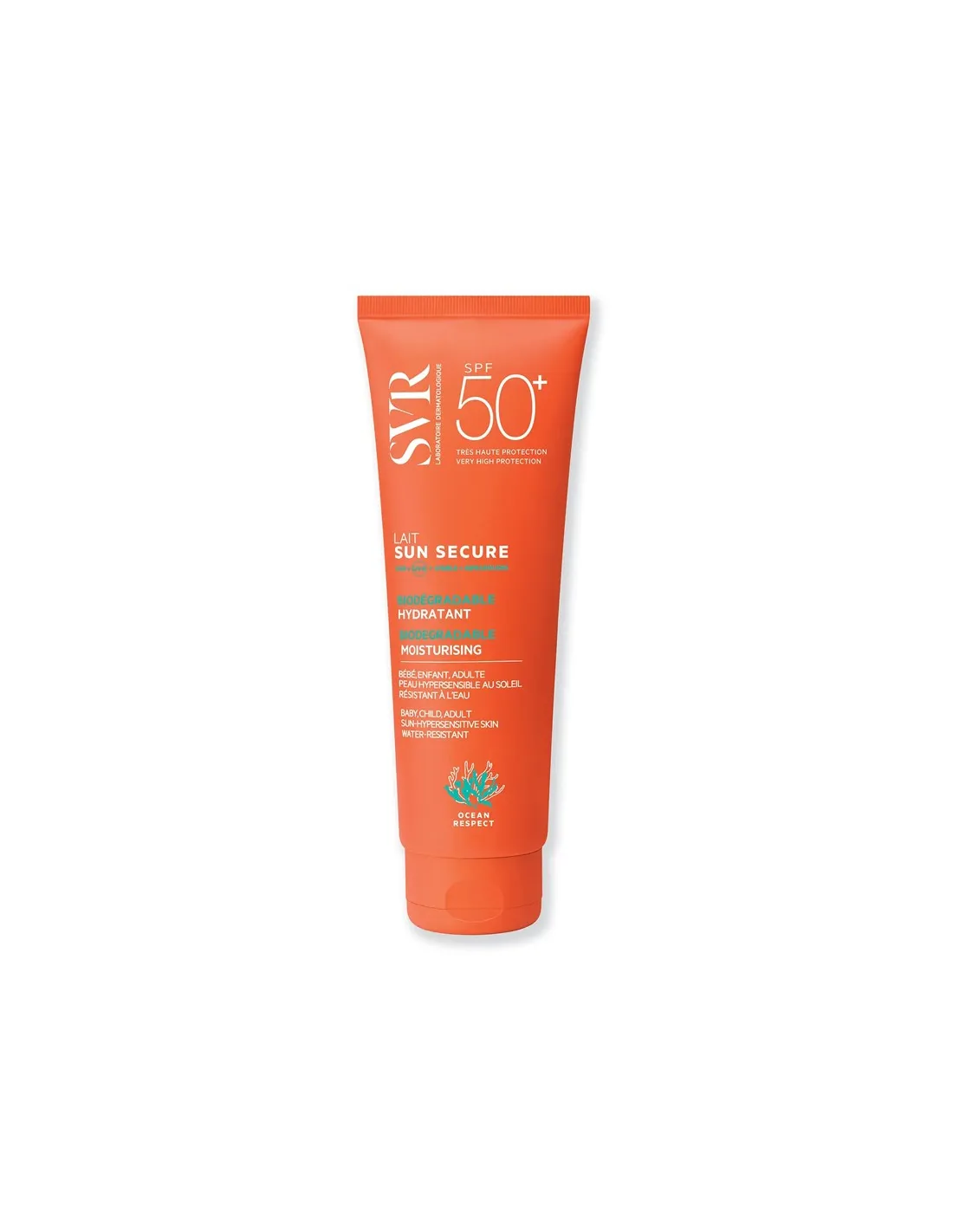 LABORATOIRES SVRSUN SECURE Lait SPF50+ offre una protezione dermatologica molto alta in un latte fluido dal finish vellutato. Ideale per pelle da normale a secca, la sua texture vellutata si fonde sulla pelle idratandola generosamente senza ungere e tracce lasciare striature bianche. Il suo delicato profumo estivo rende il momento dell’applicazione estremamente sensoriale. Resiste all’acqua, alla traspirazione e agli sfregamenti. Il piacere di essere ben protetti! Latte idratante invisibile SPF50+.