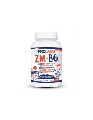 Integratore alimentare a base di zinco, magnesio e vitamina B6. Lo zinco è stato selezionato perché contribuisce al mantenimento di normali livelli di testosterone nel sangue(1). Il prodotto apporta anche magnesio che contribuisce alla normale sintesi proteica(2) e funzione muscolare. Infine la vitamina B6 contribuisce a ridurre la stanchezza e l'affaticamento(3). ZM B6 è adatto a vegetariani e vegani infatti non contiene ingredienti di origine animale.