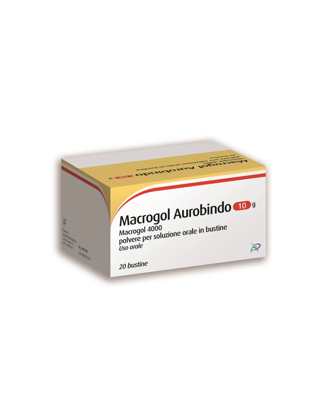 AUROBINDO PHARMA ITALIA SrlMacrogol Aurobindo contiene il principio attivo macrogol 4000 e appartiene ad un gruppo di medicinali chiamati lassativi osmotici. Aggiunge acqua alle feci, ammorbidendole e aumentandone il volume, il che aiuta a superare i problemi causati da movimenti intestinali molto lenti. Non è assorbito nel sistema circolatorio o metabolizzato nel corpo. Macrogol Aurobindo è usato per il trattamento della stitichezza negli adulti e nei bambini di età pari o superiore agli 8 anni. Questo medicinale è costituito da una polvere da sciogliere in 50 ml d'acqua e poi da bere. Agisce gradualmente entro 24-48 ore. Il trattamento della stitichezza con qualsiasi prodotto medicinale deve essere considerato in aggiunta ad uno stile di vita sano e misure dietetiche.