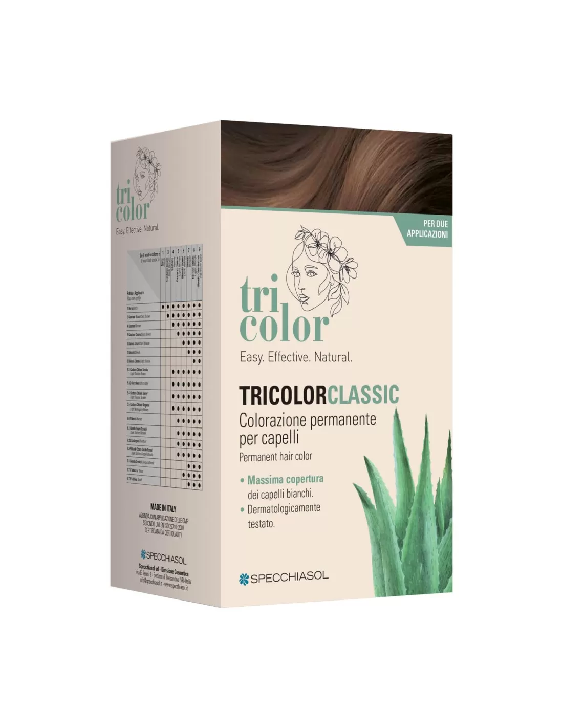SPECCHIASOL TRICOLOR CLASSIC 6 BIONDO SCURO  Tricolor Classic è una linea di colorazione innovativa formulata con materie prime di alta qualità per rispettare i capelli e il cuoio capelluto e donare luminosità e brillantezza ai capelli colorati. I vantaggi Massima copertura dei capelli bianchi; Ut...