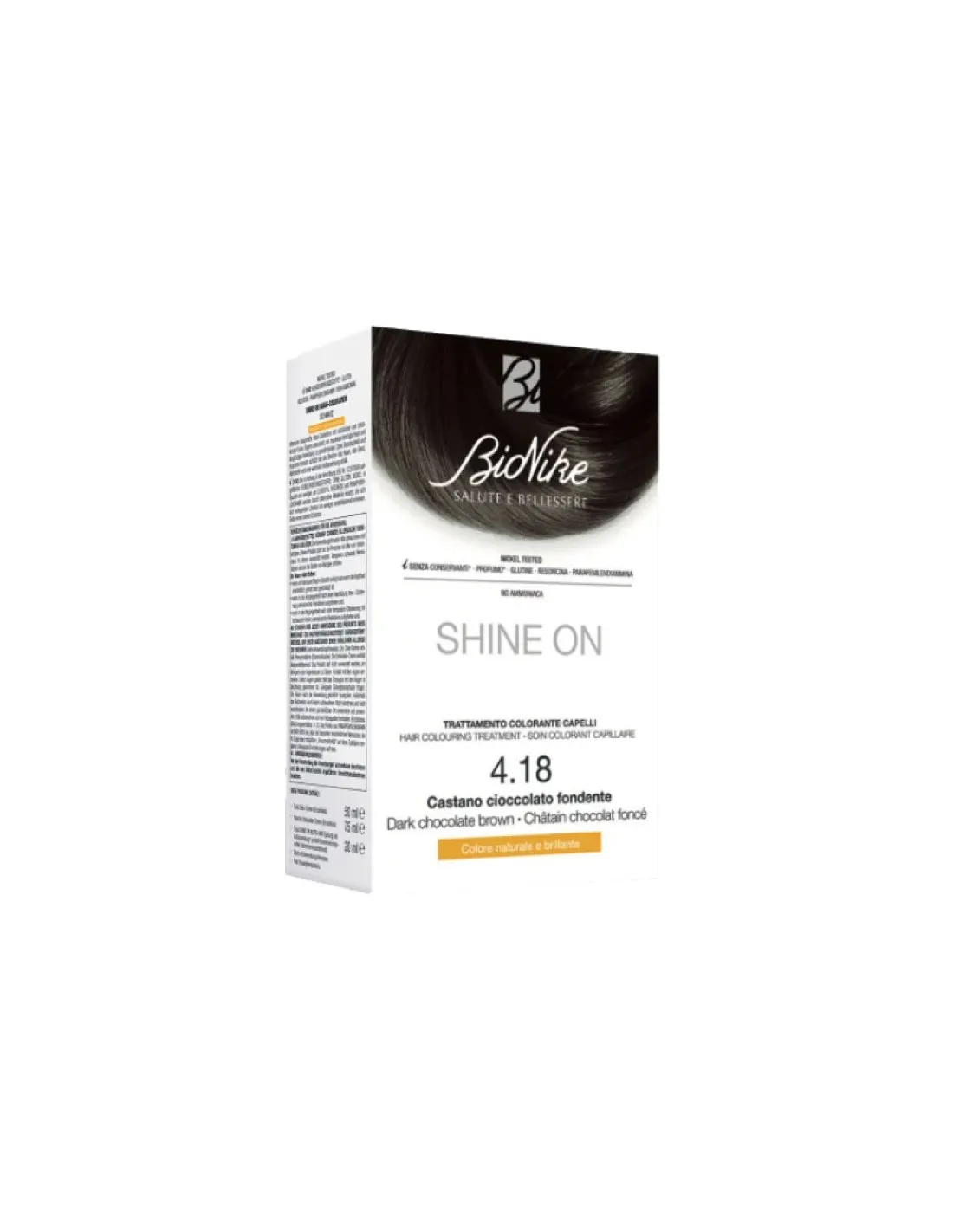 SHINE ON Trattamento Colorante Capelli CASTANO CIOCCOLATO FONDENTE 4.18 BioNike