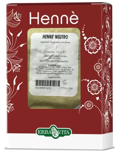 ErbaVitaHENNÈ NEUTROCOLORE PER CAPELLIMiscela di erbe selezionate in polvere in comode confezioni da 100 gPerchè usarloClassico prodotto della fitocosmesi, il suo utilizzo promuove la bellezza e il benessere dei capelloModo d'usoPer un'ottimale preparazione stemperare 100 g di polvere (per capelli d...